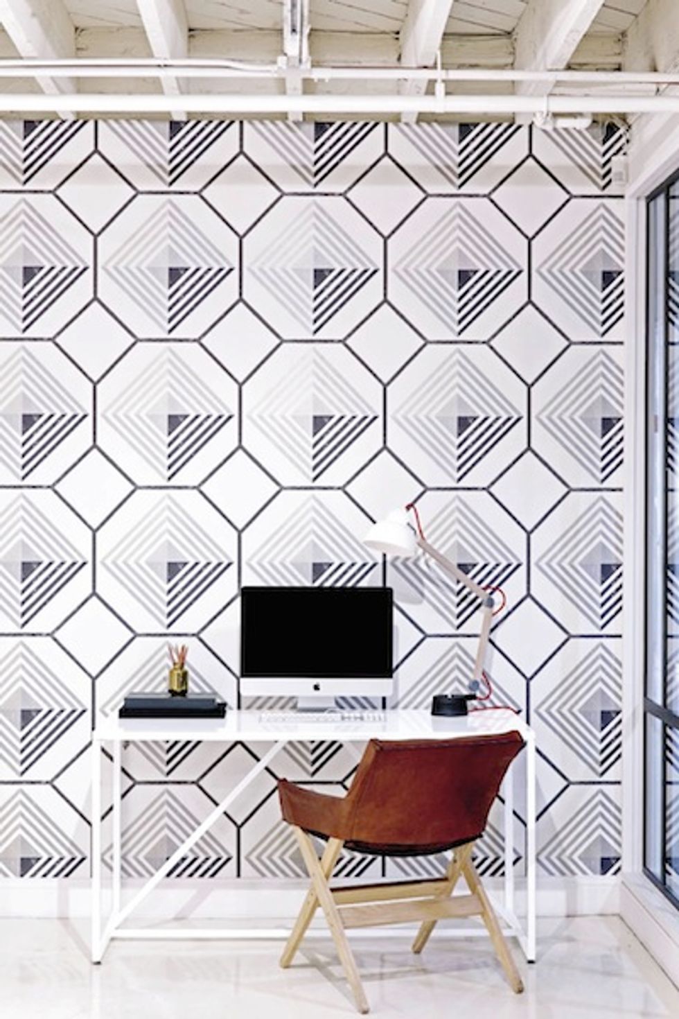 Transforming the old Sarlo showroom in the San Francisco Design District into her own creative command post required a bit of a mindshift for designer Catherine Kwong. “Decorating my office needed a much different approach compared to how I work with residences,” she says. Kwong has become known for her gorgeous interiors, filled with sophisticated mixes of graphic patterns, offbeat vintage finds, and eye-catching art. But for her headquarters, she wanted to get down to business.