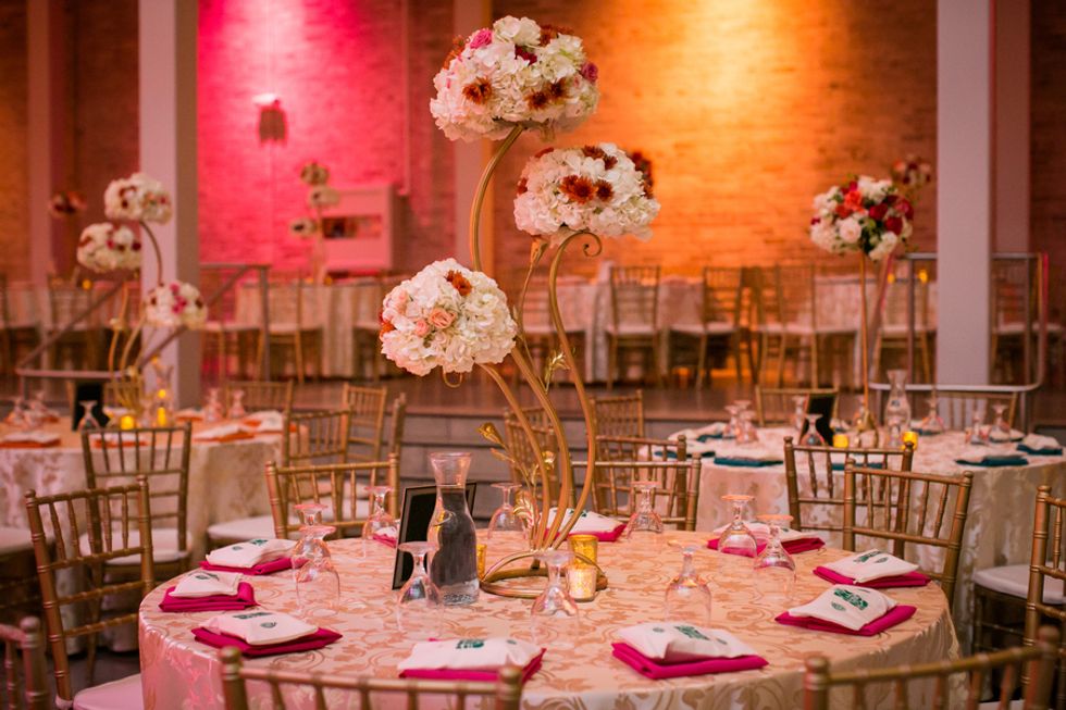 After the ceremony, the real party began as the imposing SoMa venue was transformed into a huge dance floor and dining room. Incredible floral designs and a topiary elephants brightened up the mood-lit room, and a cupcake tower replaced the traditional wedding cake.