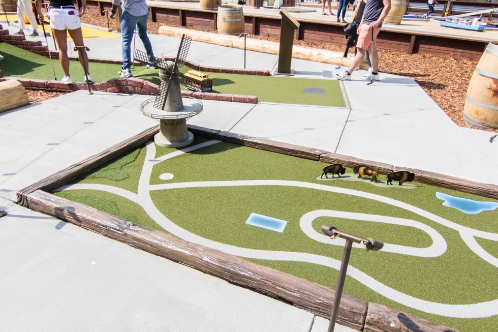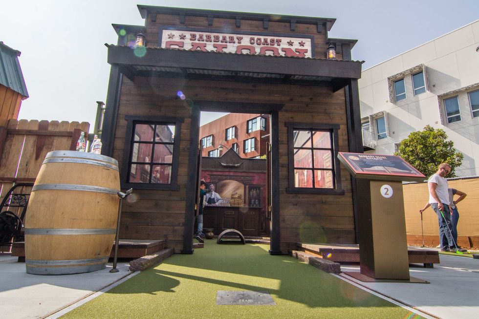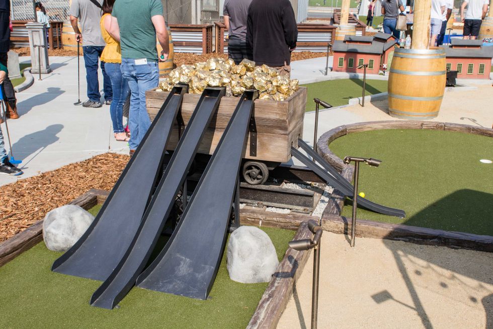 Similar to Urban Putt, each hole represents a different bit of Bay Area culture, only here the theme is the West's legacy of booms and busts—from a Barbary Coast saloon and the Gold Rush trail to the battle for the tallest building where the Transamerica Pyramid dukes it out with Salesforce Tower (ding ding ding!). Other landmarks in miniature include Chinatown's Dragon Gate and Sutro Tower. So in a way, a day here is like playing through a timeline of our city; and history buffs can read more about each story on Stagecoach's website.