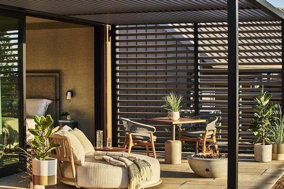 The guest cottages at Stanly Ranch have plush furnishings, private patios, and thoughtful amenities.
