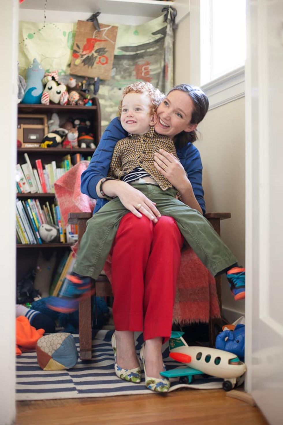 Brixton and his momma, with dad in the background, making them both laugh. We were blown away by his play closet/reading nook -- this kid has stylish duds and mad digs, too.