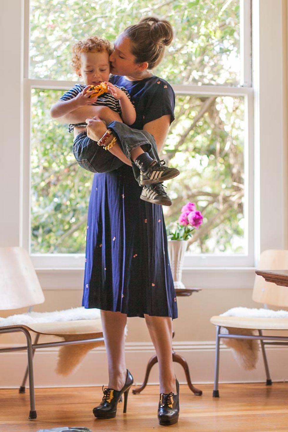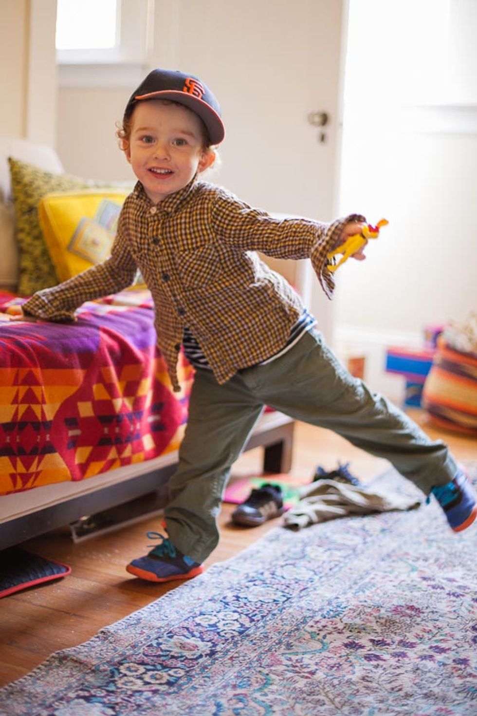 As promised, here's Brixton Plock, the super amazing two-year-old son of local artists, Kelly Tunstall and Ferris Plock. When we were shooting Kelly's Street Style photos, this little guy was running around with Hulk hands, watering plants outside, and watching his favorite movie, My Neighbor Totoro. He was too darn cute to not photograph, so we had him dress up for a Street Style shoot of his own.