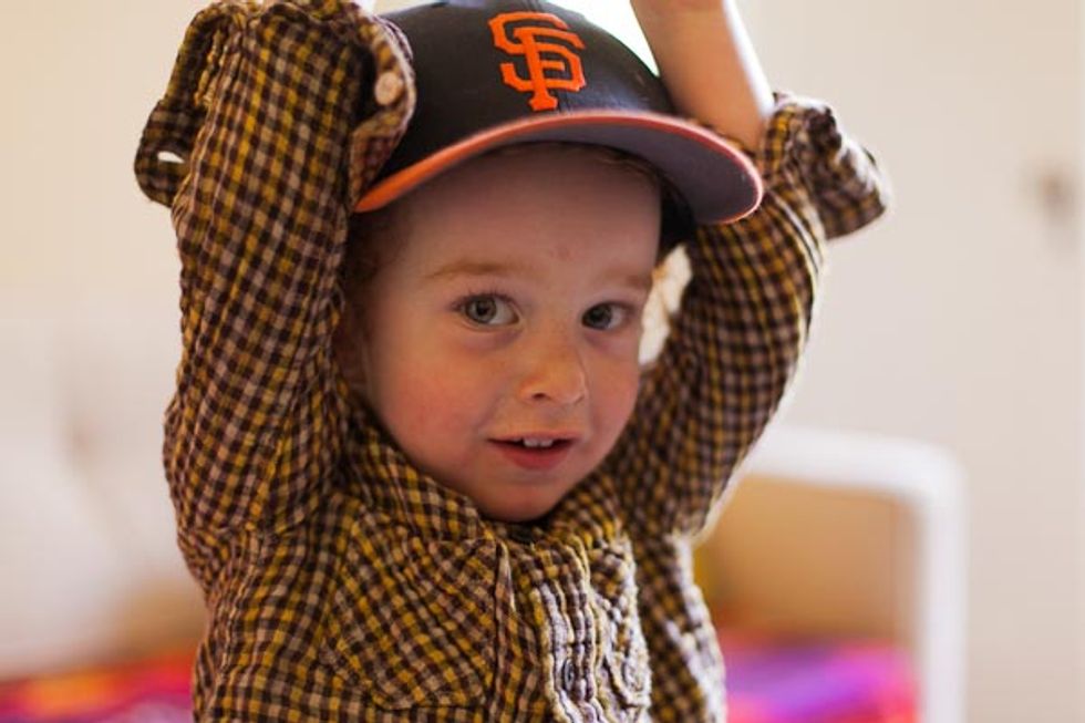 Little Brixton loves the SF Giants and has the hat (and hair) to prove it.