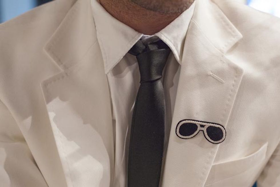 What he wore: Warby Parker glasses, purchased from The Perish Trust; Thomas Pink shirt; Dior Homme tie, purchased from Mr. Porter; Zara jacket; Park & Ronen shorts, purchased from Barneys; Nixon watch; Macon & Lesquoy sunglass pin and Colors Tokyo iPhone case, both purchased from Cavalier; Salvatore Ferragamo patent leather shoes; Haircut from The Hair Geek.