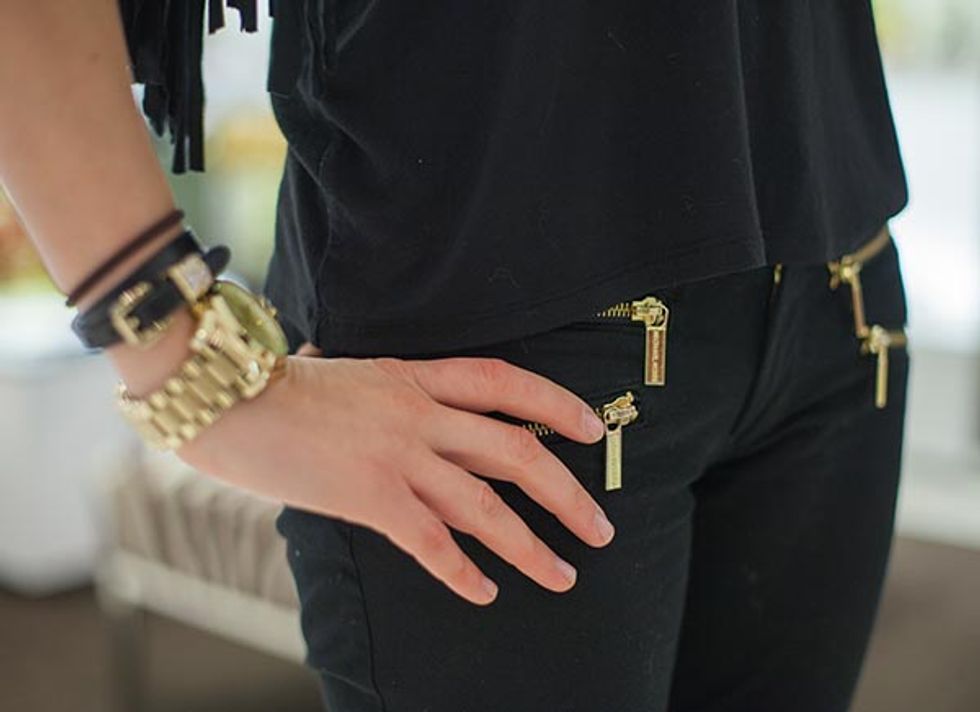 What Mariah wore: Michael Kors top, zipper pocket skinny pants, watch, bracelet and strappy pumps.