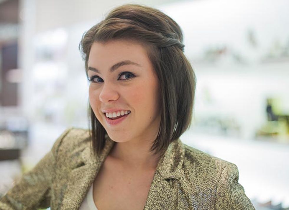 What Sofie wore: Michael Kors sequin blazer, white tee, pleather leggings, and studded pointy-toe pumps; Haircut by Alin at Bladerunners.