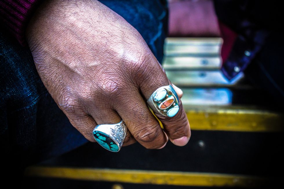 Al-Wadood Subaru, wearing The Brooklyn Circus and vintage jewelry.