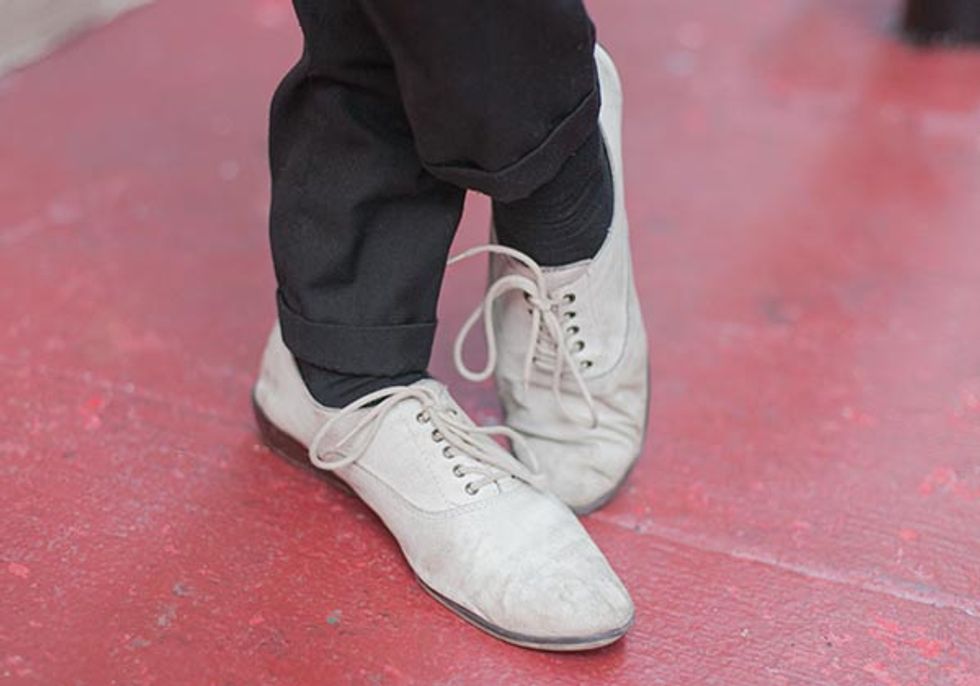 Sammy Davis Jr.: American Apparel shirt; H&M tie, jacket and pants; Vintage tie clip, purchased at Wasteland; Black patent shoes from Zara; Haircut from Bonnie at Hair on Hyde.