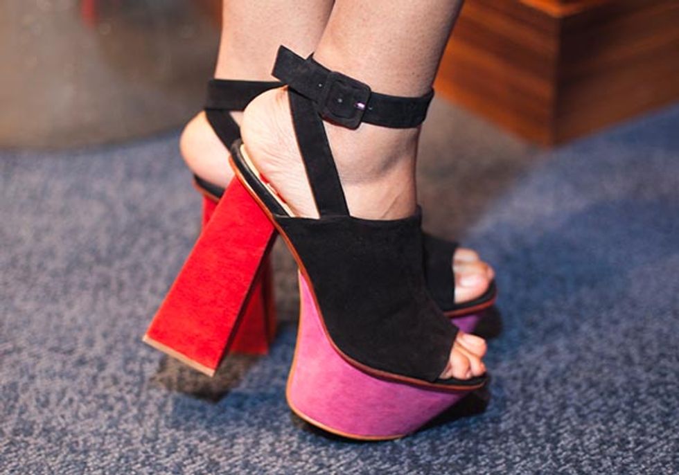 What Laura Wore: Dress by BCBG, Gucci fur-cuff heels; Mixed and matched jewelry, collected over the years.