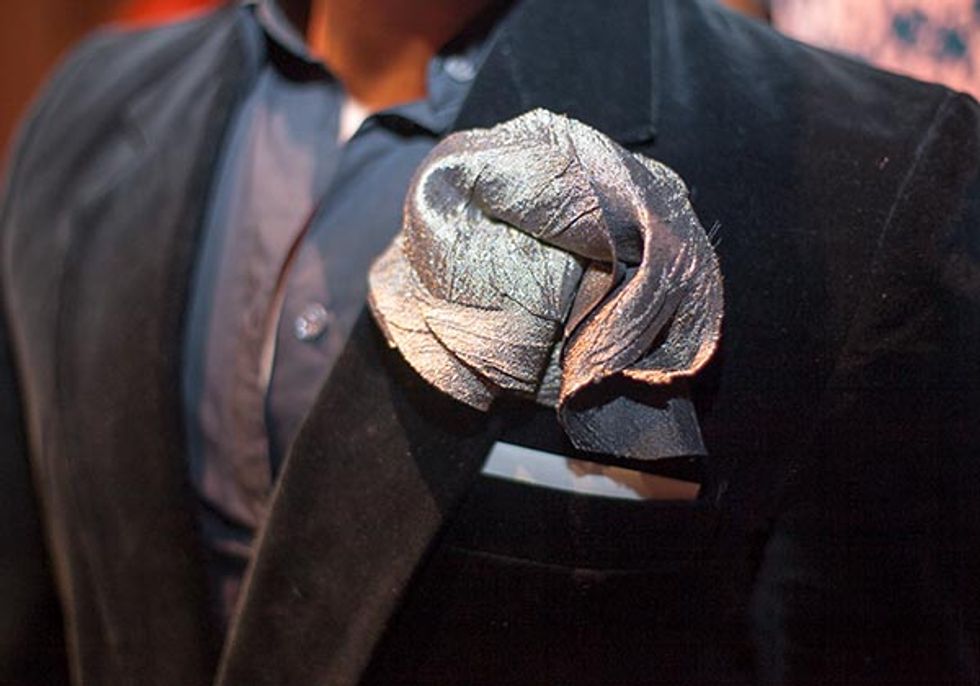 What Tony Wore: Uniqlo shirt; Vintage YSL double-breasted jacket, purchased from American Rag; Sounthavong by Tony Sananikone pocket square and flower brooch; Tony Sananikone/Joshua Morgan custom designed ring; Zara pants; Black leather Gucci lace-up shoes.