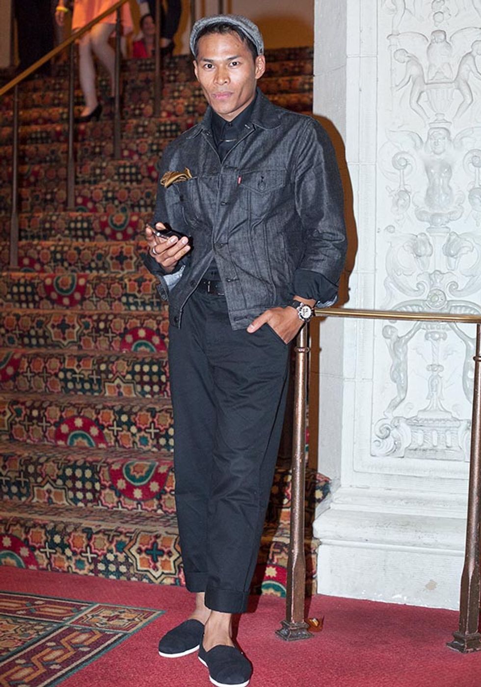 What Raul Wore: Hat from ex-girlfriend; Boss by Hugo Boss black button-down shirt; Family heirloom necklace and white gold ring; Levi's denim jacket; Pocket square purchased from a vendor in London; Bvlgari watch; Hawkings McGill Pants, purchased from Urban Outfitters; Michael Kors leather belt; Black TOM'S.