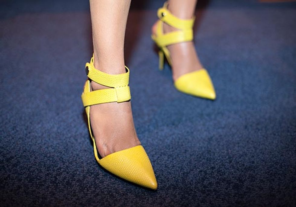 What Sabah Wore: Top by Mansoor Scott; Skirt by LeifNotes for Anthropologie; Fallon by Dana Lorenz necklace, purchased from Barneys; Henri Daussi ring; Alexander Wang yellow pointy heels, purchased from Barneys; Hint of Mint Gel OPI nail color, done at Shiny Nails in Redwood City.