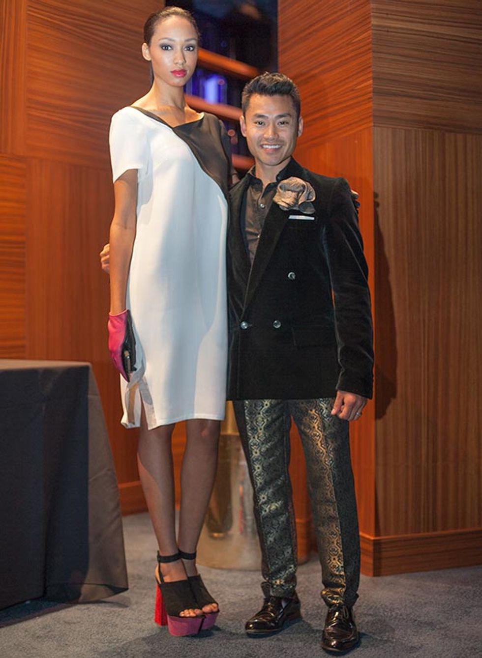Model, Khalilah Brackeen (left) and Macy's Fashion Incubator designer,Tony Sananikone (right).