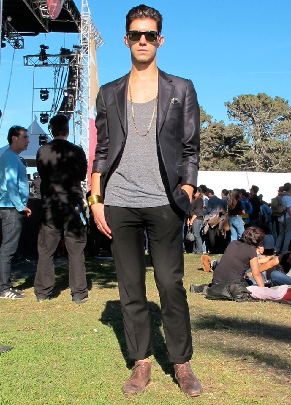 What Cole wore: Lanvin jacket; Vintage pocket square; H&M tank; Vintage necklace and cuff; Aldo shoes; Cheap sunglasses.