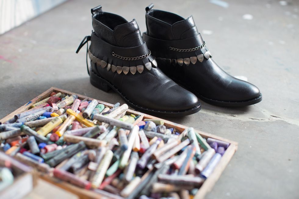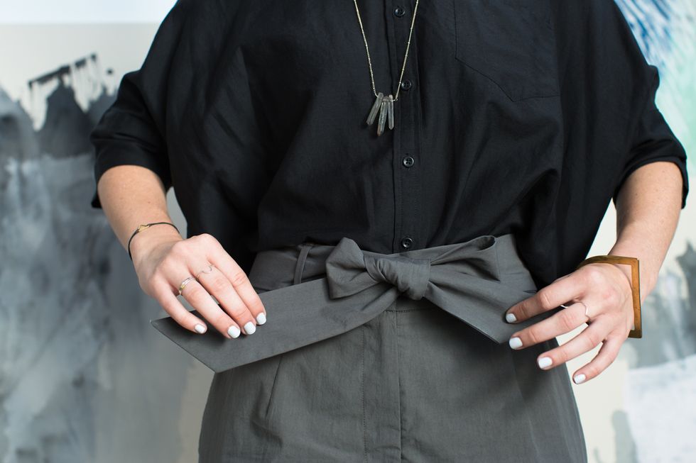 The clothing collaboration made Day think about her personal approach to fashion. “My style is very minimal, even in the choice of colors," she says, drawing a clear contrast between her sartorial expression and her work. "My art is very colorful, so for my personal style I go for black, deep green, gray, and denim." Also a propopent of shopping American-made, Day's favorite brands include such locals as Everlane and Steven Alan, and jewelry from Little Paper Planes.