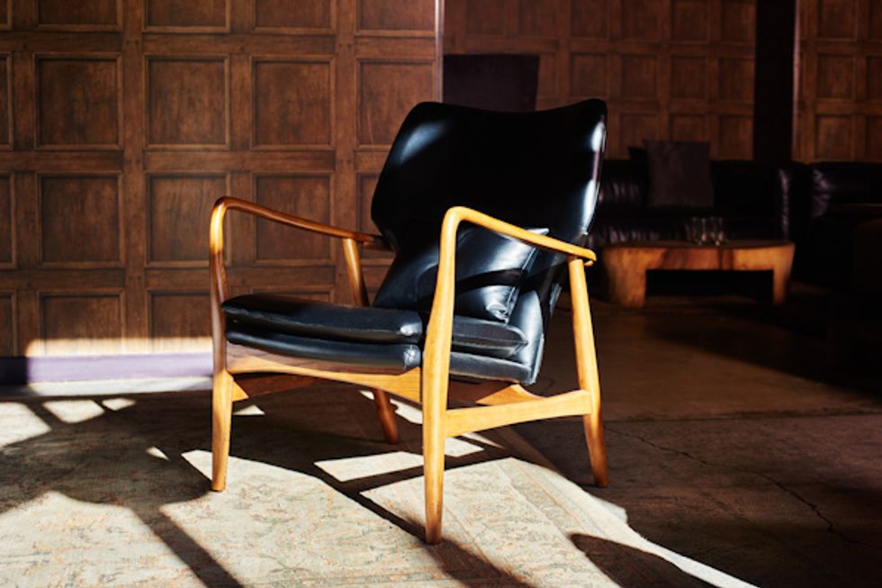 I have a wooden armchair from Harry Ostergaard, a Mid-century Danish designer. It's about 50 years ago and, somewhere along its life, it made its way to Berkeley. The teak wood was nicely painted when I found it, but the seat had been reupholstered in something really gross. I reupholstered it myself in a thick vegetable tanned leather—it’s buttery-smooth, and complements the curves of the wood very nicely. It sits by a window in my apartment.