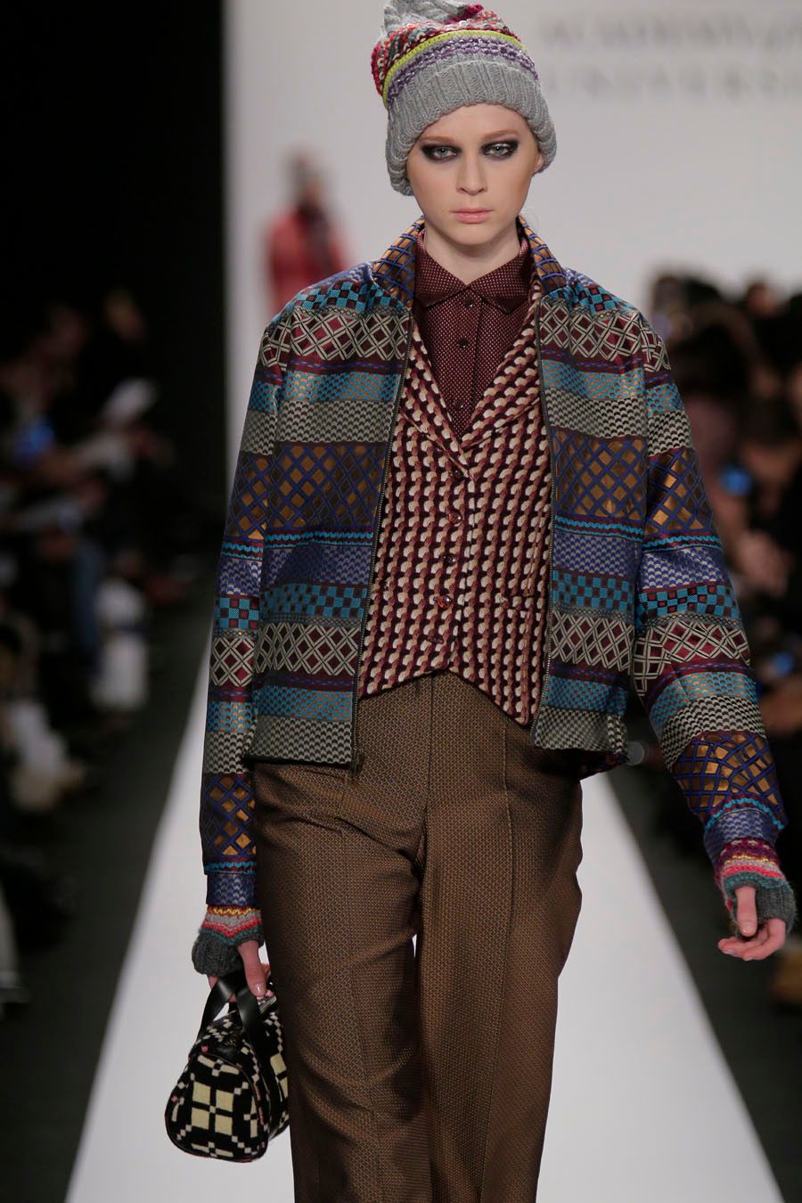The opening collection brought together Janine Villa, a fashion designer, and Amanda Nervig, a knitwear designer, who collaborated on a collection inspired by the color and complexity of Villa’s assemblage of traditional Welsh blankets. The choice to focus on silhouettes that were tailored and simple allowed the intricacy of the textiles to leave a bold impression. Through simple layering, the interweaving pattern and color left an impression of intended opposition, a soft and inspiring clash.