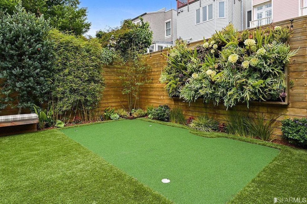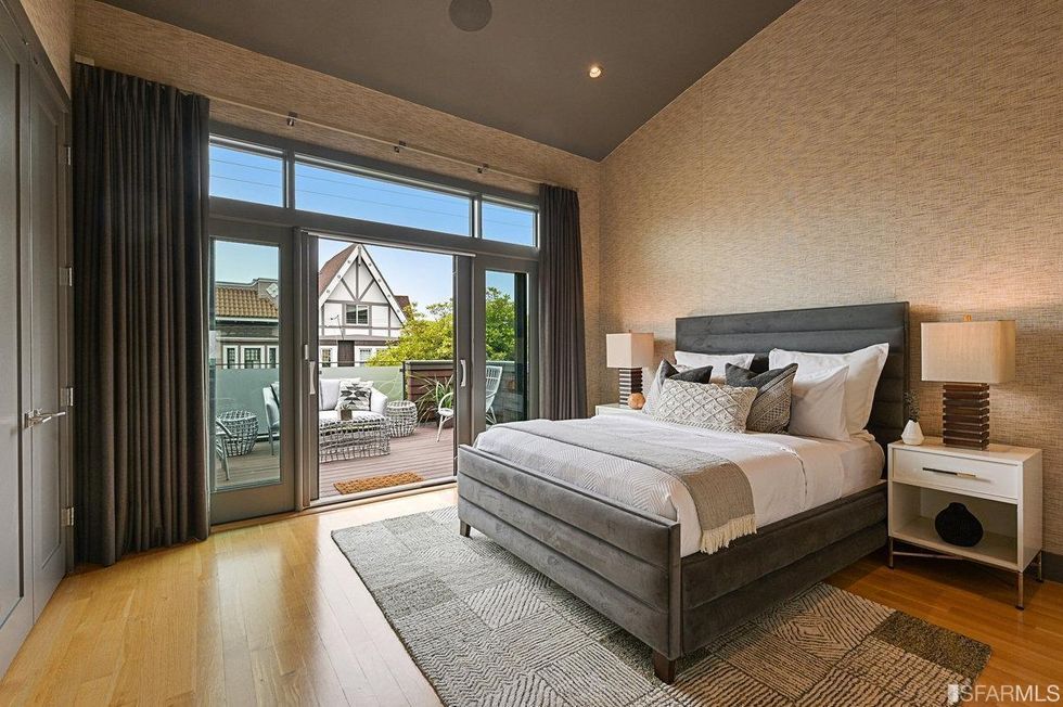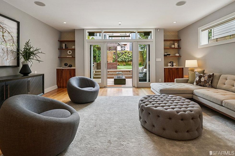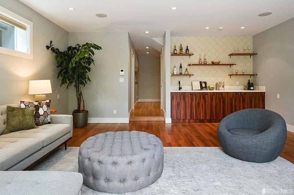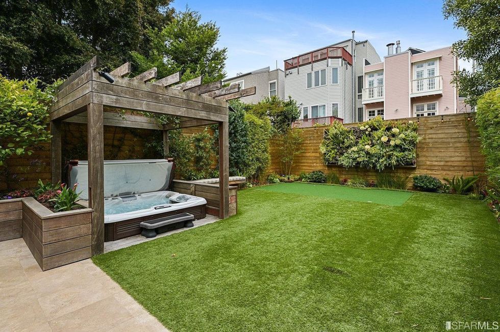 The bottom floor is the place to lounge. The family room has a wet bar complete with a matte black sink and Bosch dishwasher. There is also a full bathroom with a steam shower. Sliding glass doors here open onto the garden. Sprawl on the grassy lawn framed by bamboo and a living wall, or soak in the hot tub beneath a covered arbor.