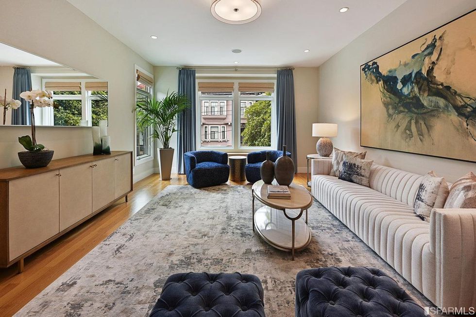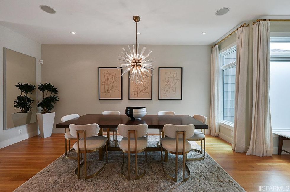The freshly remodeled, three-story residence is full of pretty, Instagram-worthy vignettes. The rooms are spacious and, while each has its own mood, all share hardwood floors, custom window treatments, recessed lighting, and built-in speakers.
