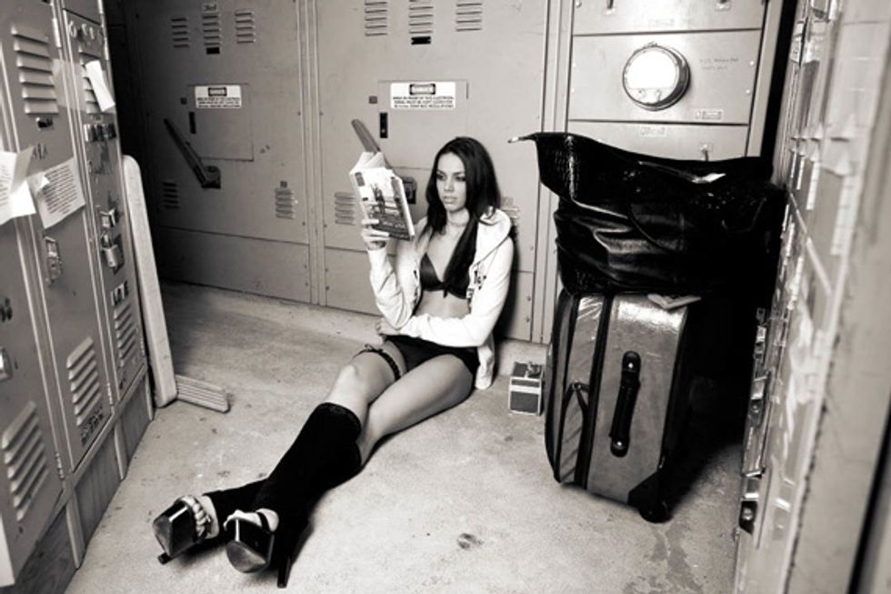 I come back after work one evening for the full experience—a $100, three-song lap dance in the back room. After treating one quasi-off-duty dancer to a $2 mimosa and suffering through some inane small talk, I bolt to chat up the very sexy Kelli from London. I'm an immediate sucker for her dark skin, punky haircut, and charming accent. To the VIP room we go.