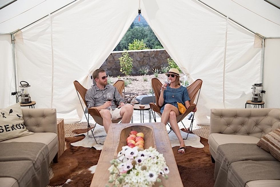 On May 17, Hamel Family Wines invited family and friends to the grand opening of their winery with rustic fanfare. Tossing aside pretense in favor of a kitschy-chic camping theme, Hamel encouraged guests to let loose and reconnect with their inner camper. Local wine enthusiasts chatted over glasses of vino and strolled through the Hamel Family vineyards and cellar. Guests gathered at picnic tables and noshed on specially prepared meals by Delfina and Girl & The Fig. Musical guests Slow Motion Cowboys brought up the tempo of the evening by performing atop a renovated vintage truck.