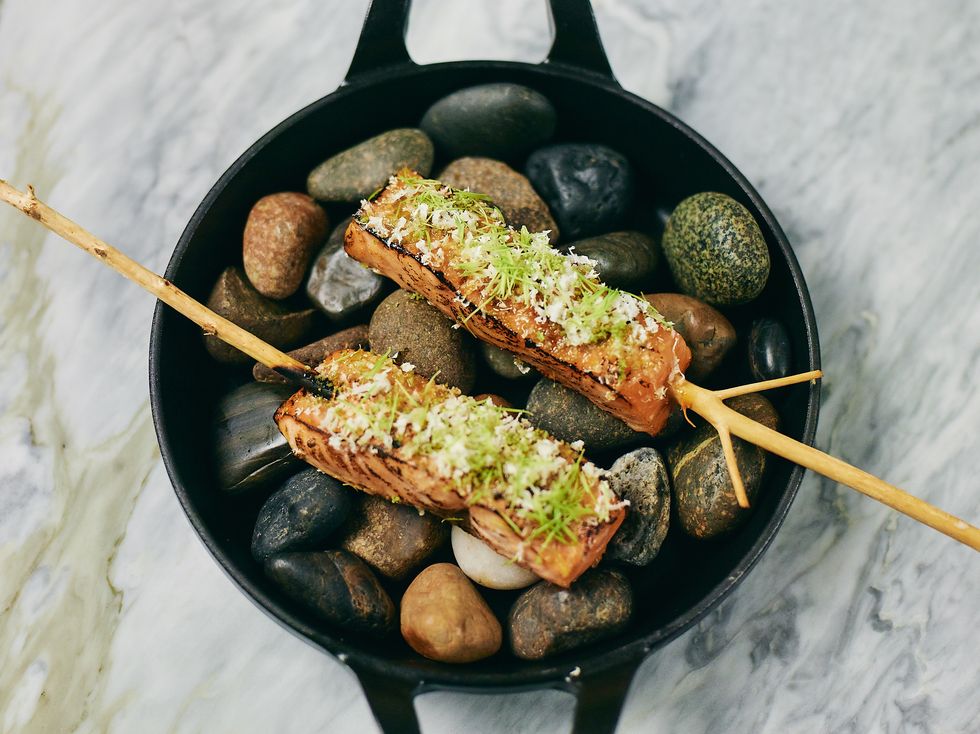 Yaletown seems to be the epicenter of cool in Vancouver, so we shacked up at the impossibly hip Opus Hotel, drawn to its opulent, offbeat rooms; edgy artwork (photographer Farrah Aviva's stiletto statements on gun control; Taizo Yamamoto's drawings of homeless shopping carts); and needy neon ("Just hold me" lights up the bar). // A post-flight facial should be S.O.P. for all travelers, so we walked three minutes from the hotel to the Skoah Spa. The 75- minute Facialicious treatment is tailored to your skin type and includes a head-to-toe massage. We walked out with a jar of their Hydradew moisture gel because, when your aesthetician tells you it's 10 times more hydrating than aloe vera, you pounce. // High on #selfcare, we made a beeline for Glory Juice Company around the corner, picking up a bottle of the Tiffany-blue Magic Switchel tonic, a super-healthy version of Gatorade made with apple cider vinegar, ginger, and nutrient-rich blue-green algae. // On our first night in town, we dined on endless rows of imaginative sushi at the upscale Japanese restaurant Minami, also a three-minute walk from the Opus. While the signature aburi oshi sushi—lacquered in sauce and then flame-kissed for that beloved note of caramelization—lived up to the hype, the star of the meal was the opera cake, a magical, unexpected layering of green-tea genoise, dark-chocolate ganache, and matcha ice cream.