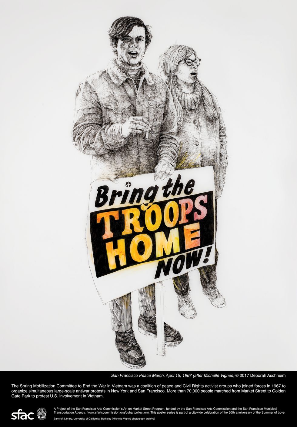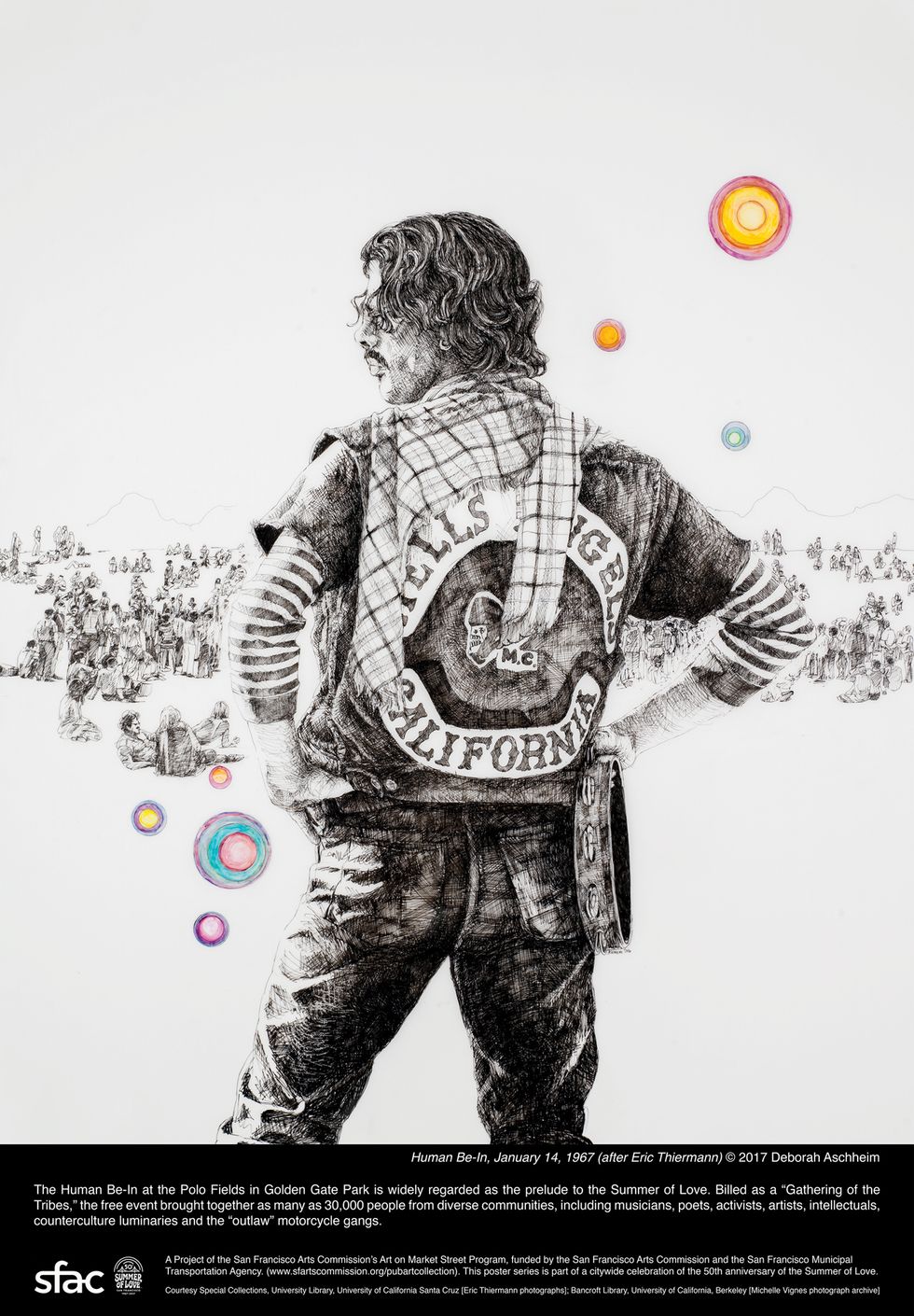 "Deborah Aschheim's beautifully rendered posters capture the spirit of the ideas and radical expression that made the San Francisco Bay Area the epicenter of the counterculture movement," said Director of Cultural Affairs Tom DeCaigny. "The 50th anniversary of the Summer of Love is an opportunity to reconnect with its important legacy of political activism, inclusiveness and, above all, love."
