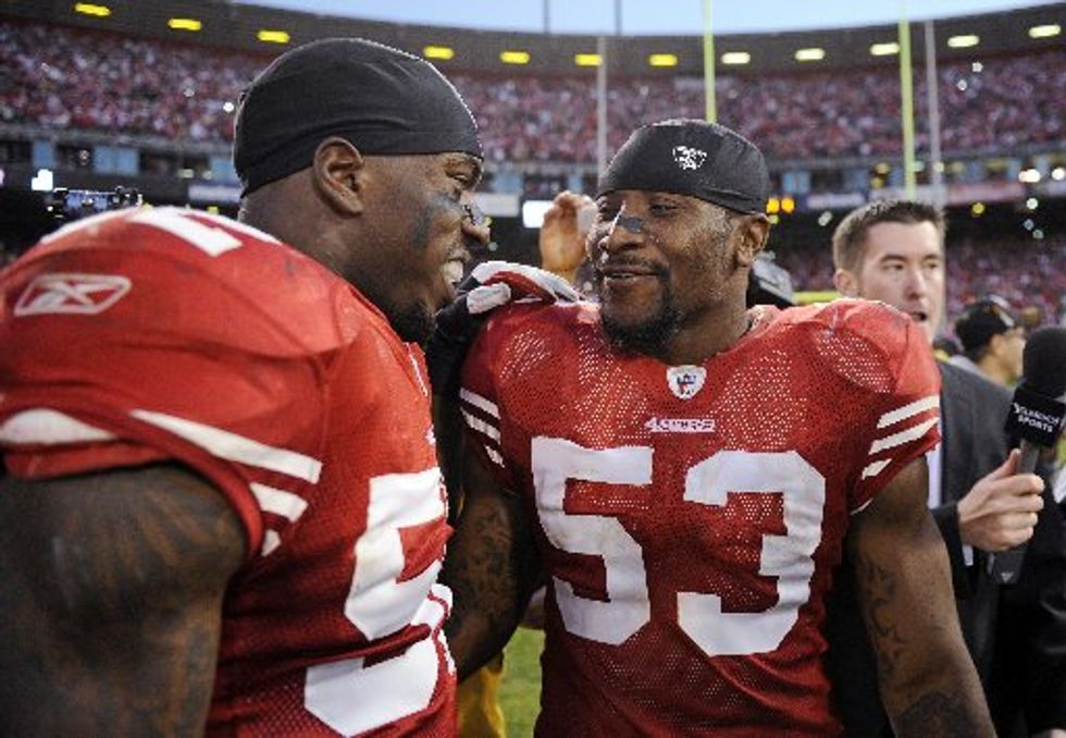Don't be confused between Bowman (number 53) and Willis (number 52). They're both about the same size and weight, and side by side, they make up one formidable defensive duo. Together, they rush the passer, defend the pass, and stop runs as well as any two-man team in the NFL.