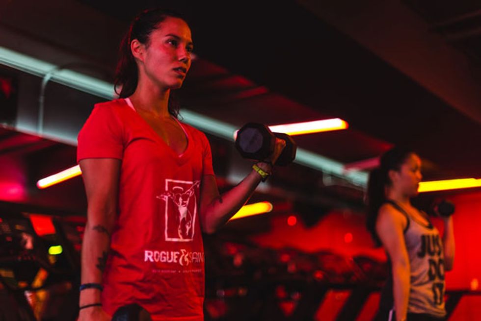 Each 55-minute Athletic Pilates class in the Saint Studio is a pure Springboard practice that moves through a series of resistance exercises requiring core strength, mental focus, and technical precision. As our trainer Emily demonstrated each move, they appeared to be fairly simple and easy. That was, of course, until we tried them. With the smallest adjustment of tucking your hips or back, what initially looked like a stretch pulsed through our abs. Much to my chagrin as I glanced at my fiancé in the mirror, the seemlingly innocent, tiny, repetitive movements resulted in involuntary shaking as his muscles battled fatigue. With a capacity of 12 students per class, the trainers are attentive with corrections (read, no cheating). There is a very good reason Misha and his team named the class “Athletic Pilates.” As we left the Saint Studio feeling stronger and leaner, I began to wonder what the Rogue Box would dole out 48 hours later.