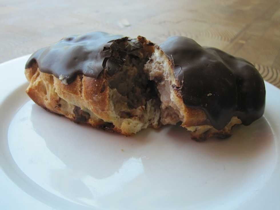 Here, you’ll find a paunch of cool, thick pastry cream ready to burst from its choux pastry shell. Some days, Chef Delangle injects them with chocolate cream; other days it’s hazelnut or a combination. All are finished with a glaze of semi-hardened dark chocolate.