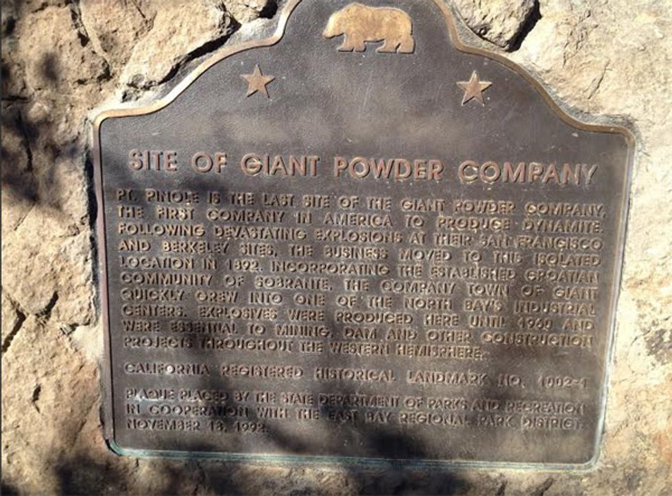 The Point Pinole Regional Shoreline owes its existence to explosives. More than a hundred years ago, black powder was produced in San Francisco for use in the gold mines of the Sierras. After numerous factory explosions, the manufacture of such substances was deemed too dangerous for populated areas and the companies were exiled to the East Bay – Albany, El Cerrito, and Point Pinole. A series of explosions in the late 1800s, and a particularly huge one in 1905 that killed 23 people in Albany, sent the companies packing again, this time to remote Point Pinole. The Giant Powder Company was the first arrive in 1892.