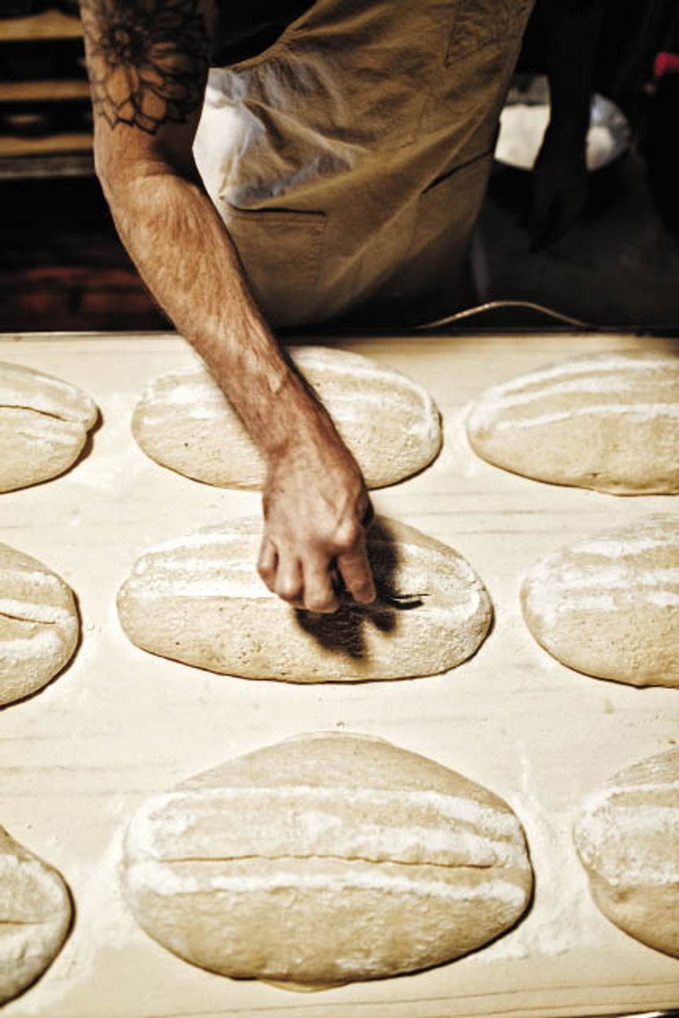 Robertson slashes the tops of the loaves with a razor blade prior to baking. His prized techniques have spread internationally like culinary gospel.