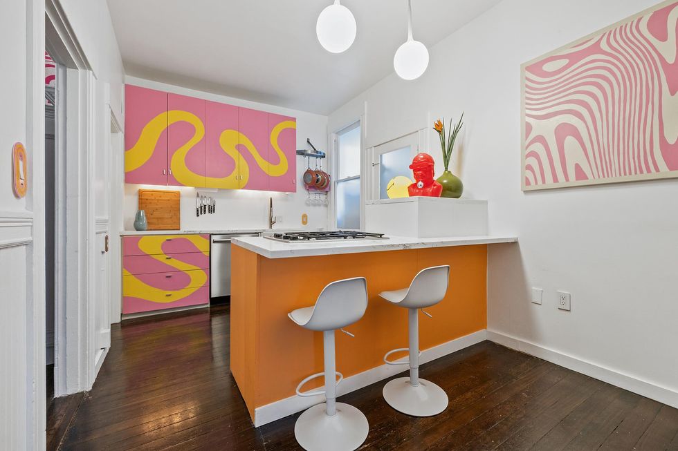 The San Francisco artist and designer has been chronicling the over-the-top creative makeover of her Victorian condo, perched above Elixir in the Mission District, via social media since she purchased it in September 2020. She calls it the "Squiggle" home, and it's easy to see why.