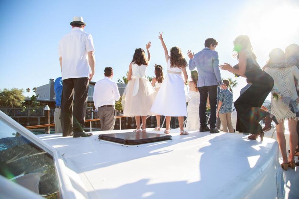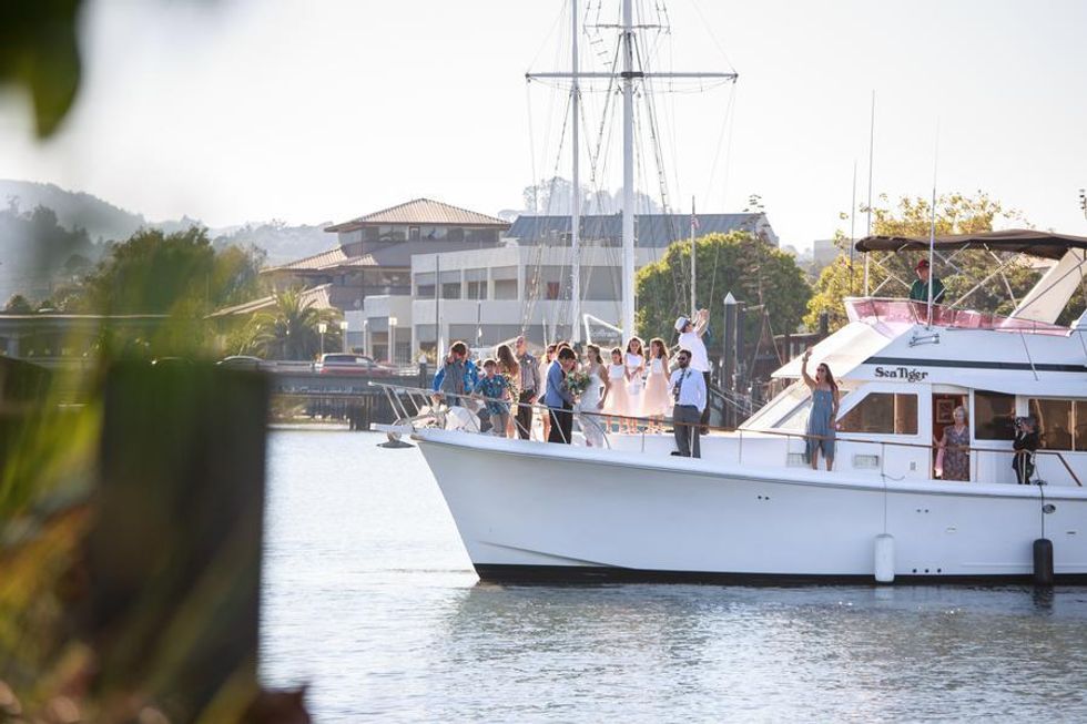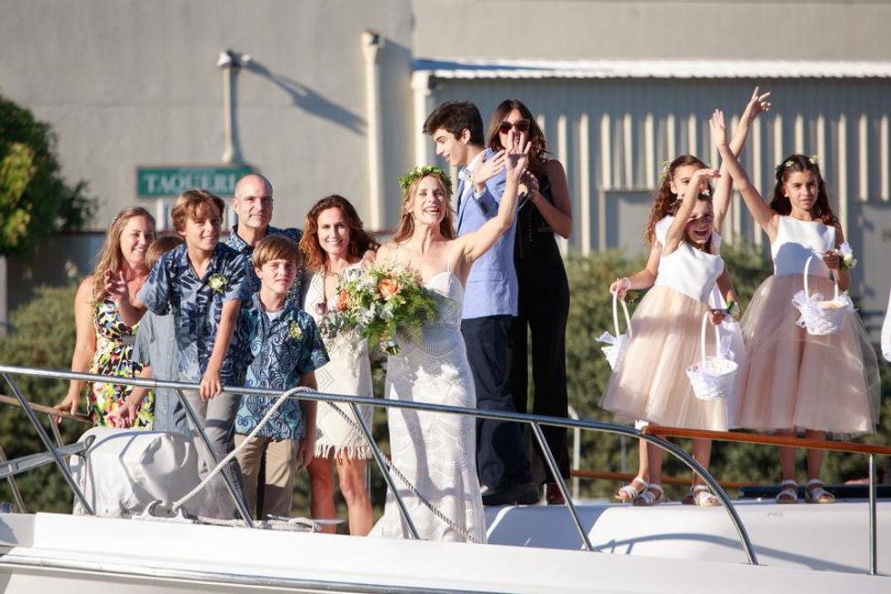 Meanwhile, his bride to be, Karen McCloskey, soothed her nerves during a calm sail on a gorgeous yacht with her flower girls, making a dramatic entrance that spurred laughters and cheers from guests.