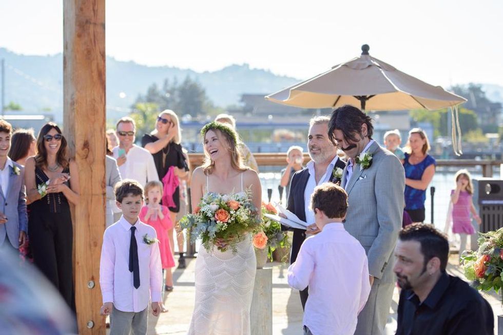 As bassist for San Rafael's beloved Terrapin Family Band, Brian Rashap saw no other place to get married than in the pier-side park just outside Terrapin Crossroads. The story is cuteness to our ears.