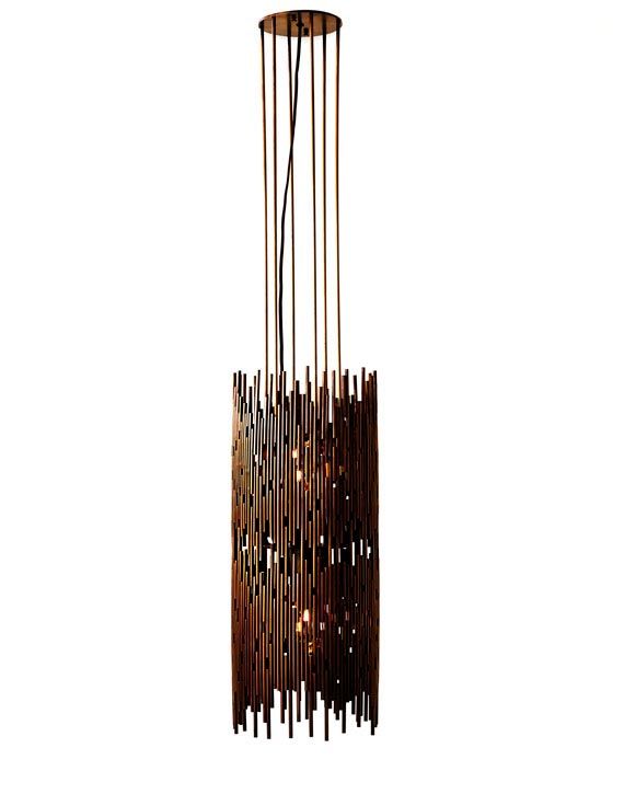 6. Set your room asmolder with this Tuell + Reynolds pendant, made from bronze silicon rods that are cut into random lengths, arranged by hand, and welded together to filter an incandescent glow. Price upon request at De Sousa Hughes.