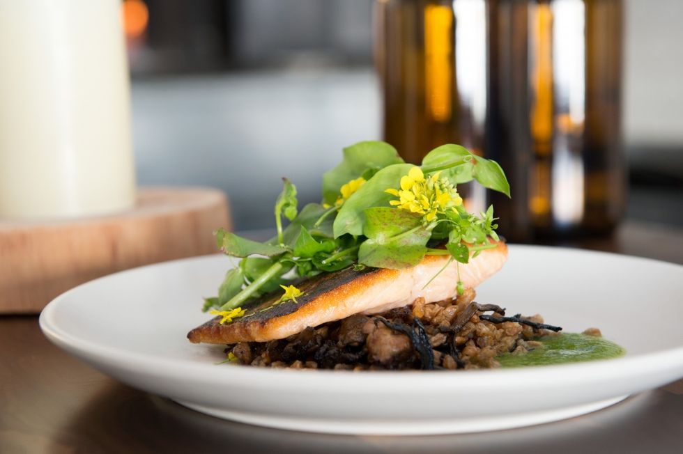 (Arctic char with farro, nettles, wild lettuces and mushrooms at Molina)