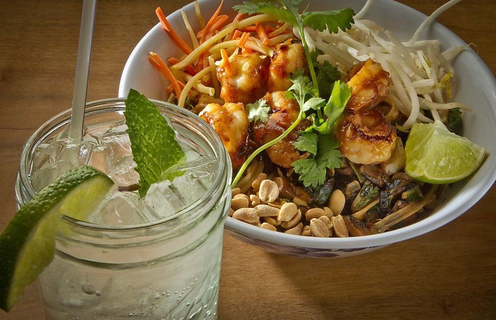 (The Norcal Pad Thai with the "Fuzzy G" drink at Boo Koo Asian Street Food)