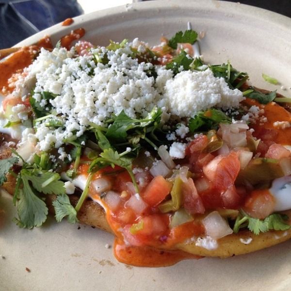 Huarache with Cactus Salad at El Huarache Loco. 100 Alemany Boulevard, (415) 572-6832