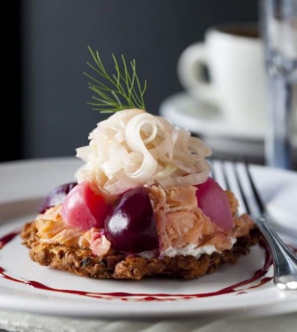 Potato Latke with Pickled Beets at Baker & Banker. 1701 Octavia Street, (415) 351-2500