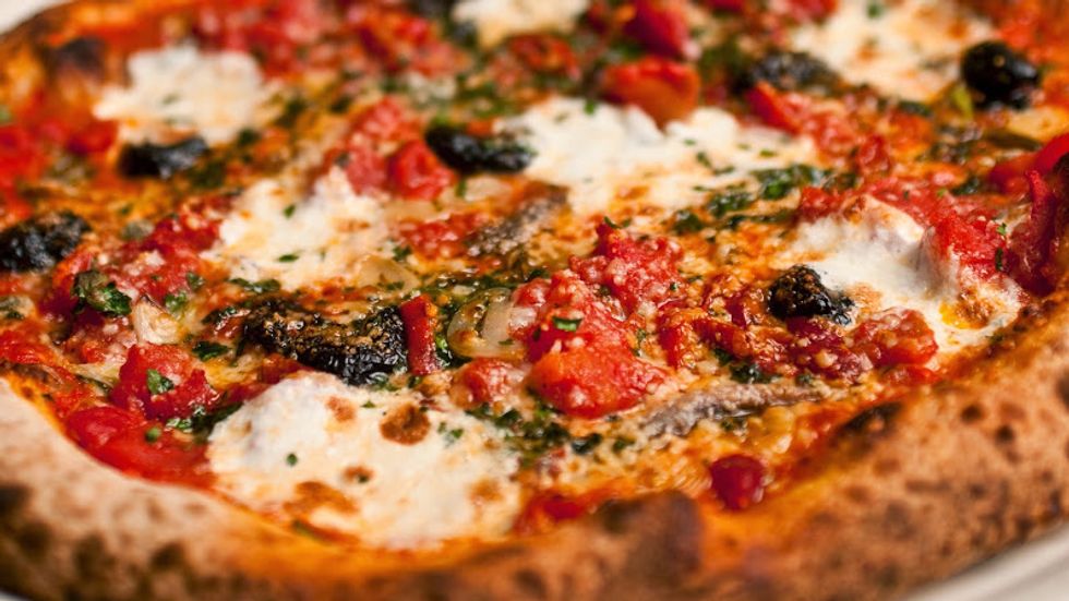 38. Dictator pizza (marinated rib-eye, mozzarella, serrano chiles, kimchi, and shichimi): Diavola Pizzeria & Salumeria // 21021 Geyserville Ave (Geyersville), diavolapizzeria.com