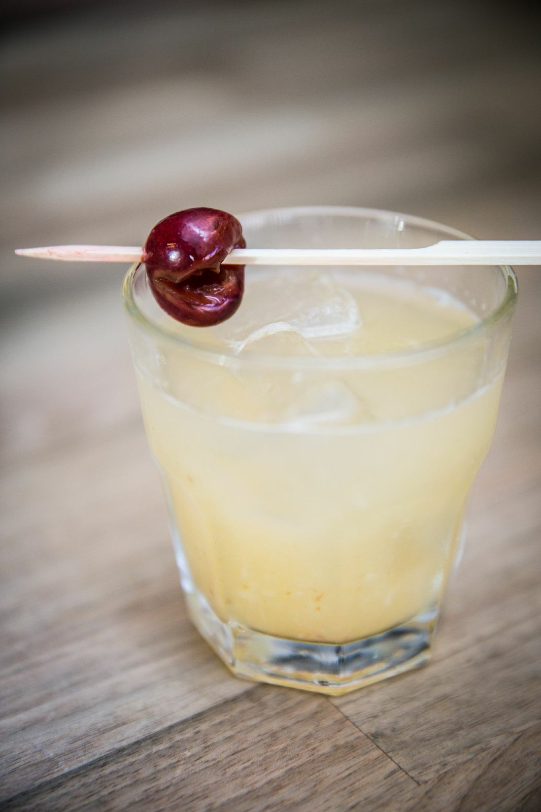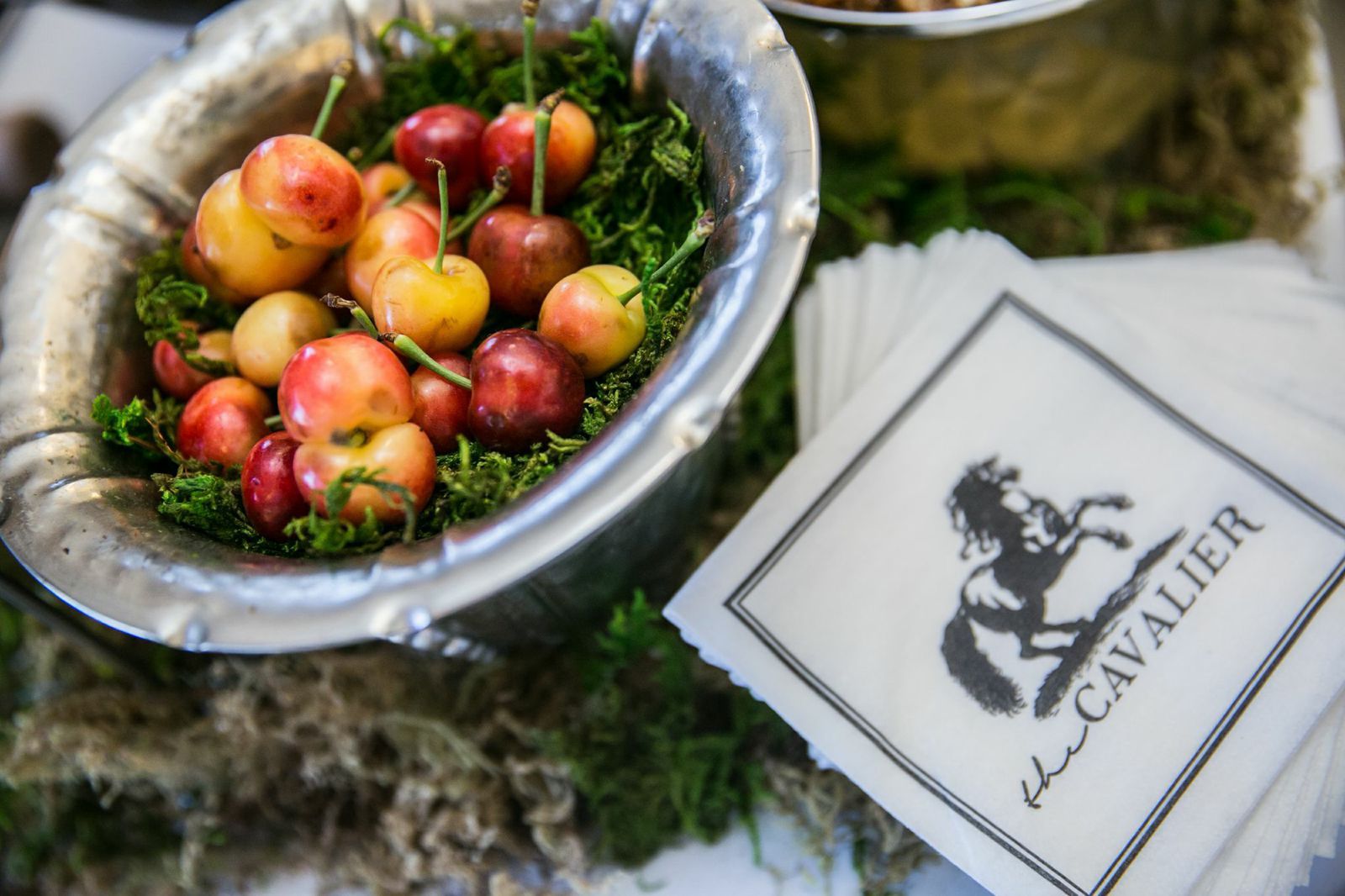 The Cavalier's Hangar 1 Vodka "Smashed & Stoned" cocktail with cherry, white peach, and apricot stones (all smashed)