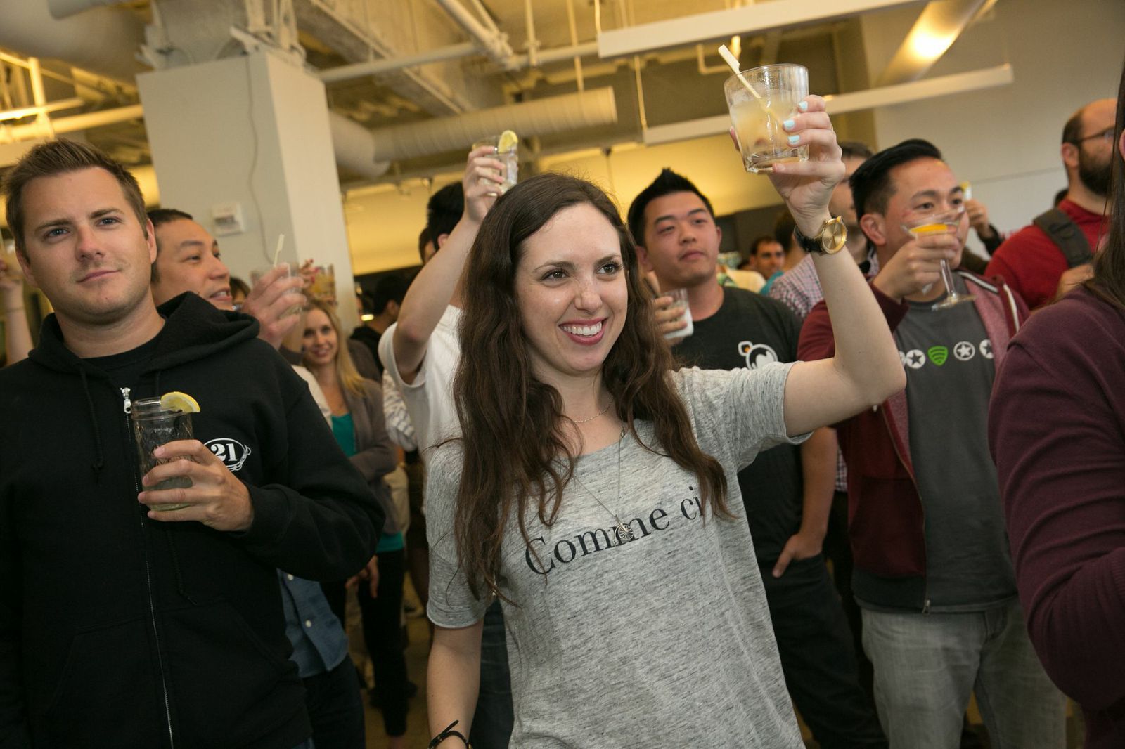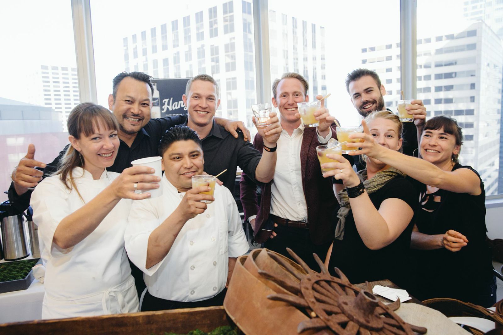 Lookout employees toasting to Hangar 1 Vodka