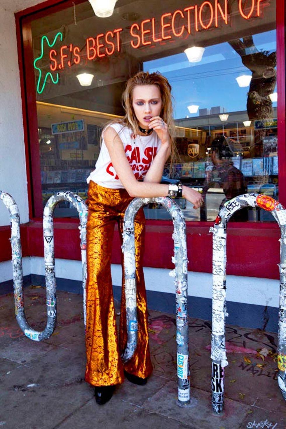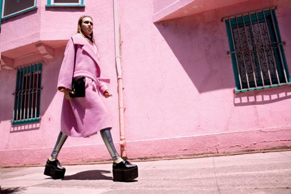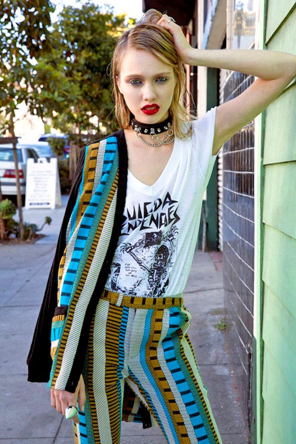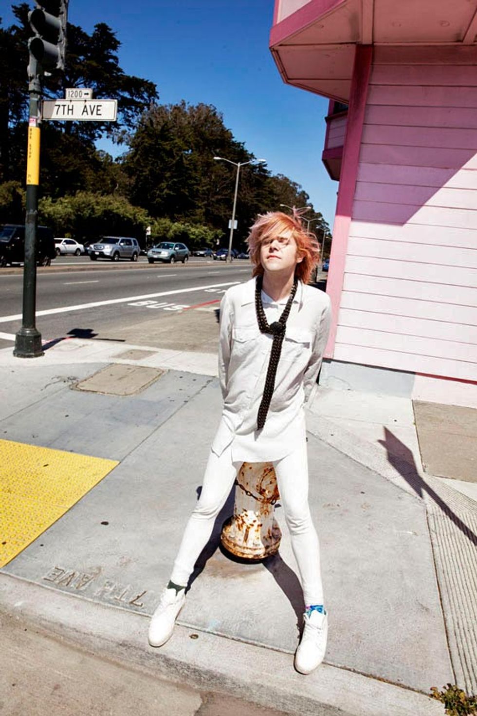 Here, Owen's former bandmate Ariel Pink and Bay Area model Haley Sutton are shot against San Francisco's pastel hues for fashion's hard-soft mix seen in the July/August issue of 7x7. The look: Punk meets the '60s with a wink to Ziggy Stardust.