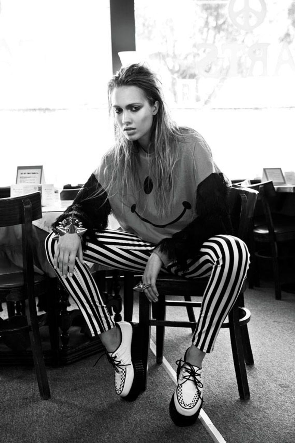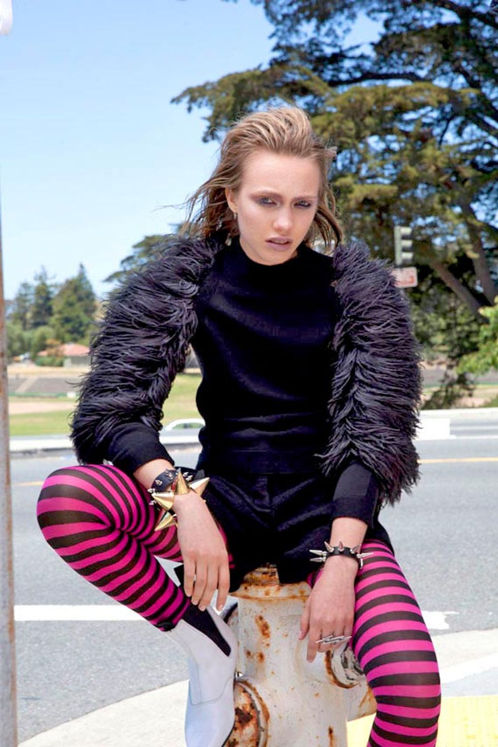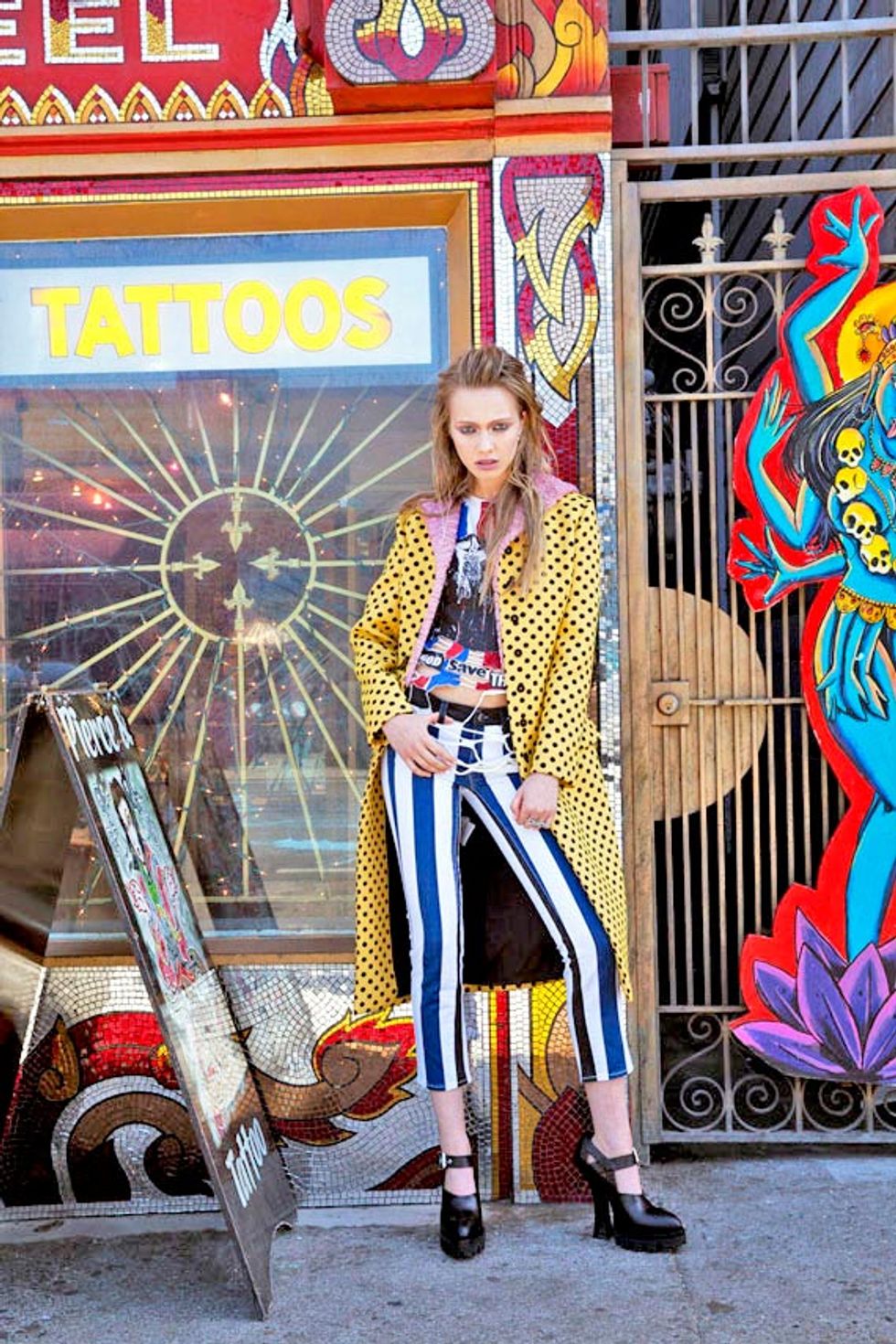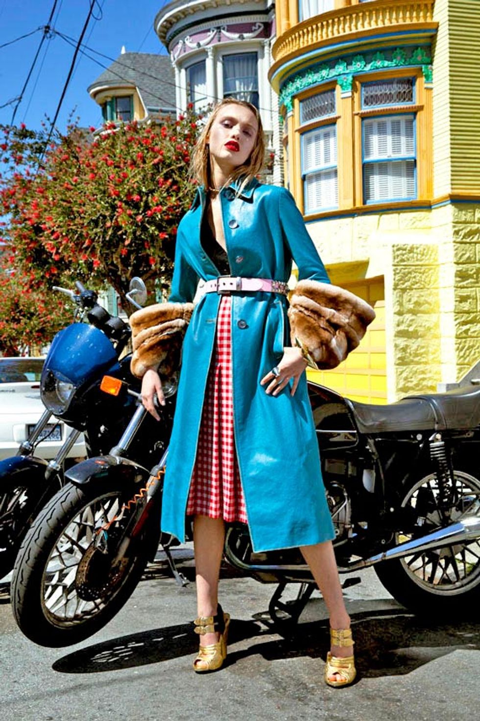 Here, Owen's former bandmate Ariel Pink and Bay Area model Haley Sutton are shot against San Francisco's pastel hues for fashion's hard-soft mix seen in the July/August issue of 7x7. The look: Punk meets the '60s with a wink to Ziggy Stardust.
