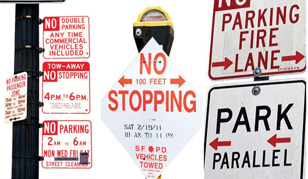 Yellow: If you take the time to read the fine print on the confusing signs, loading zones can be your frenemy. Though some start at 7 a.m, most are in effect during business hours (Monday through Saturday, 9 a.m.–6 p.m.). and many end early at 11 a.m. Fine: $75.