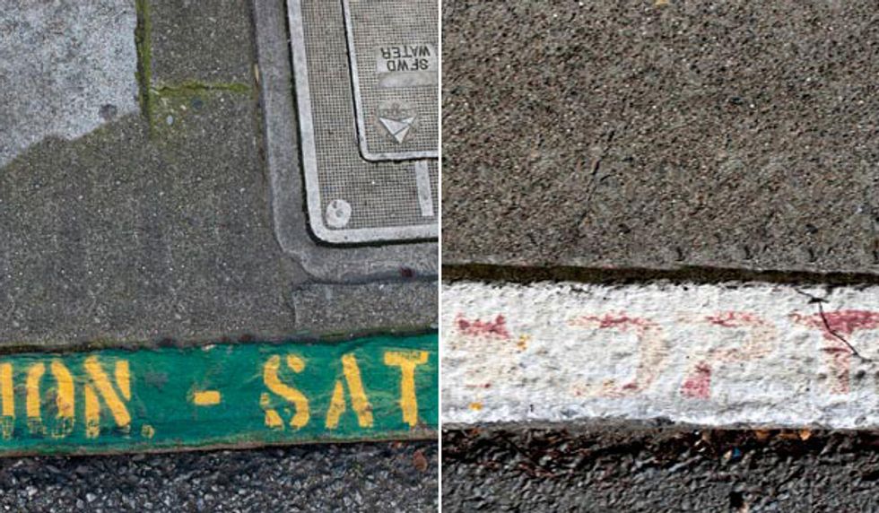 Green: Green isn’t environmentally friendly in this case. Usually situated in front of the likes of convenience stores, post offices, and libraries, these curbs offer a 10-minute hall pass, generally from 9 a.m.–6 p.m., Monday through Saturday. Fine: $65