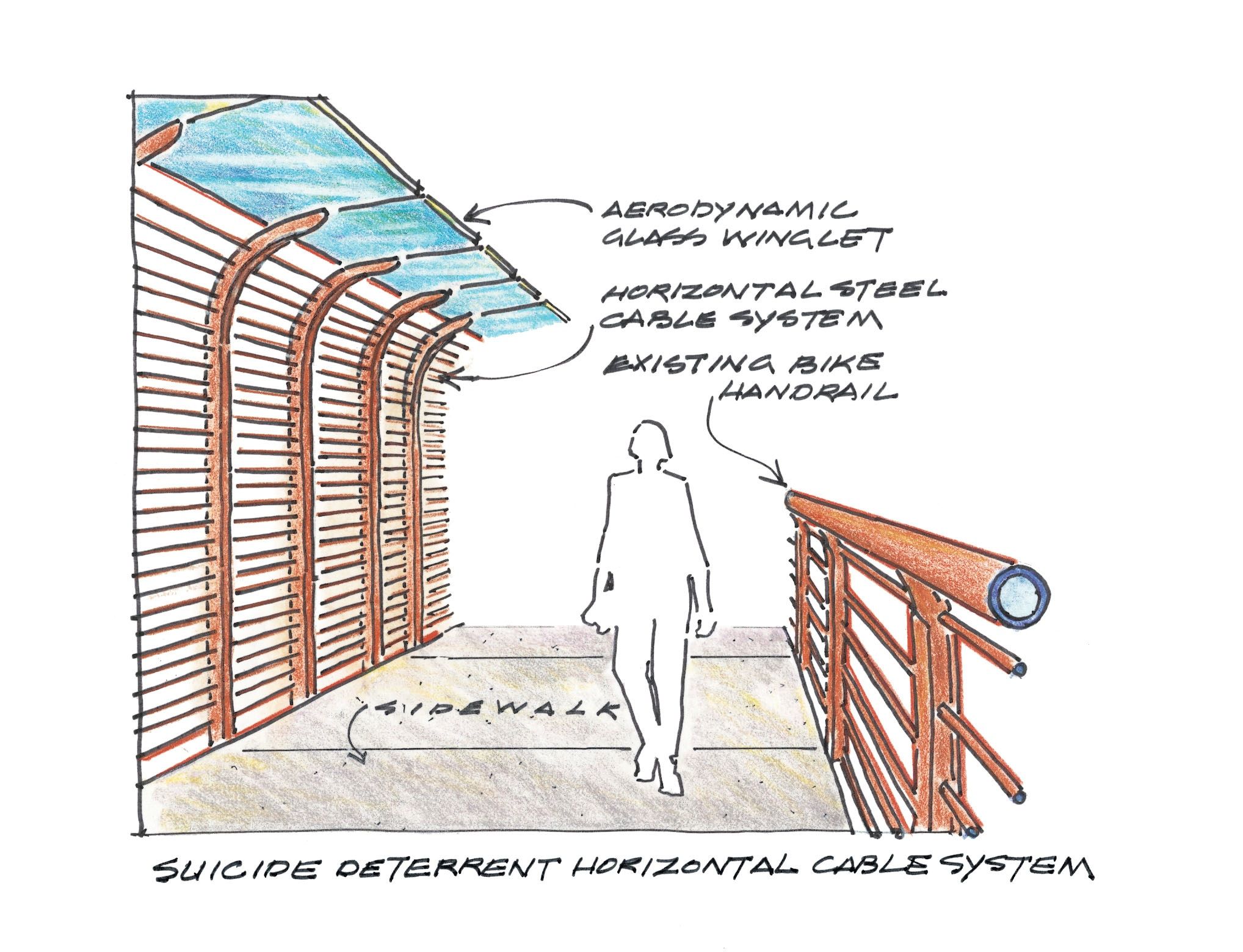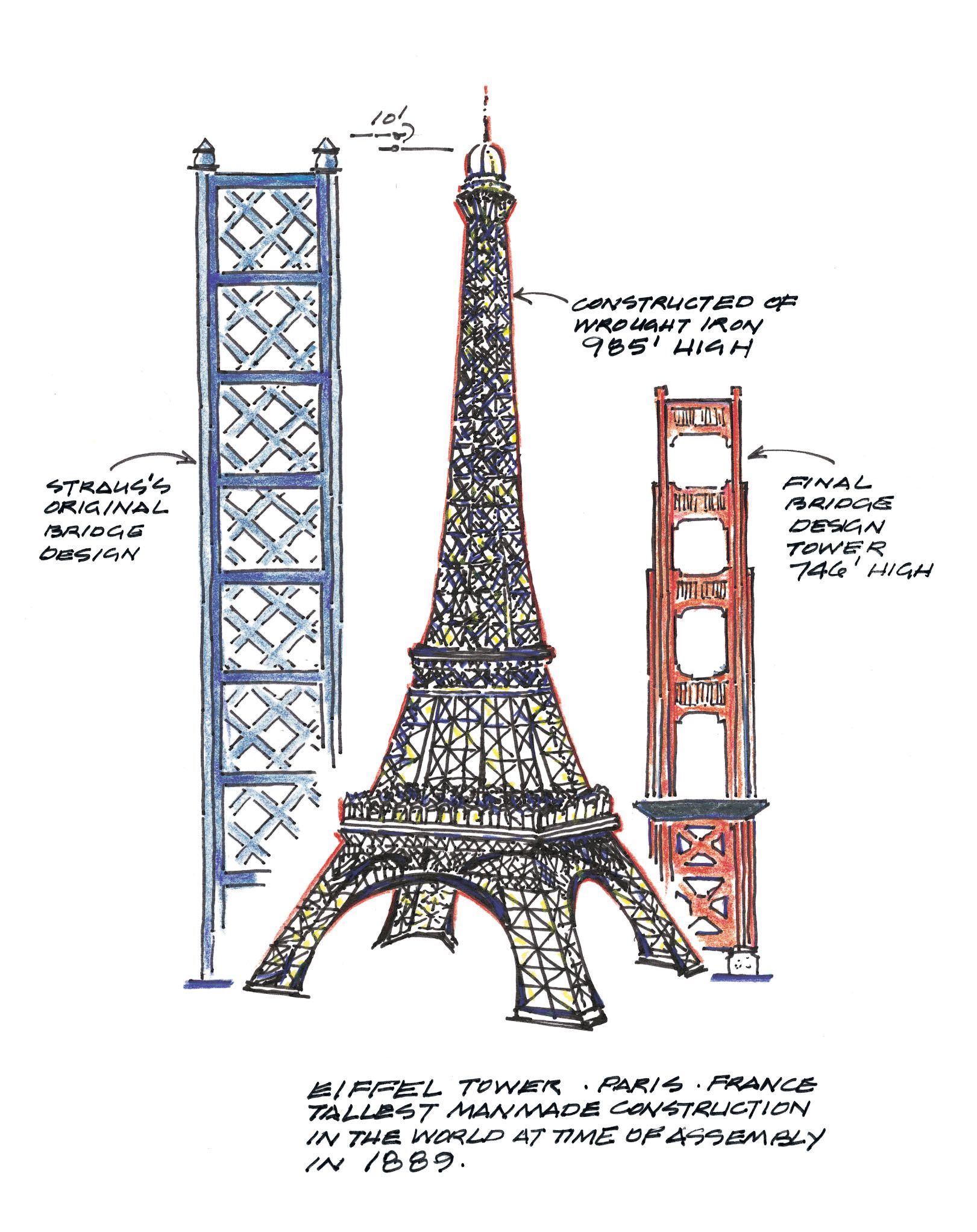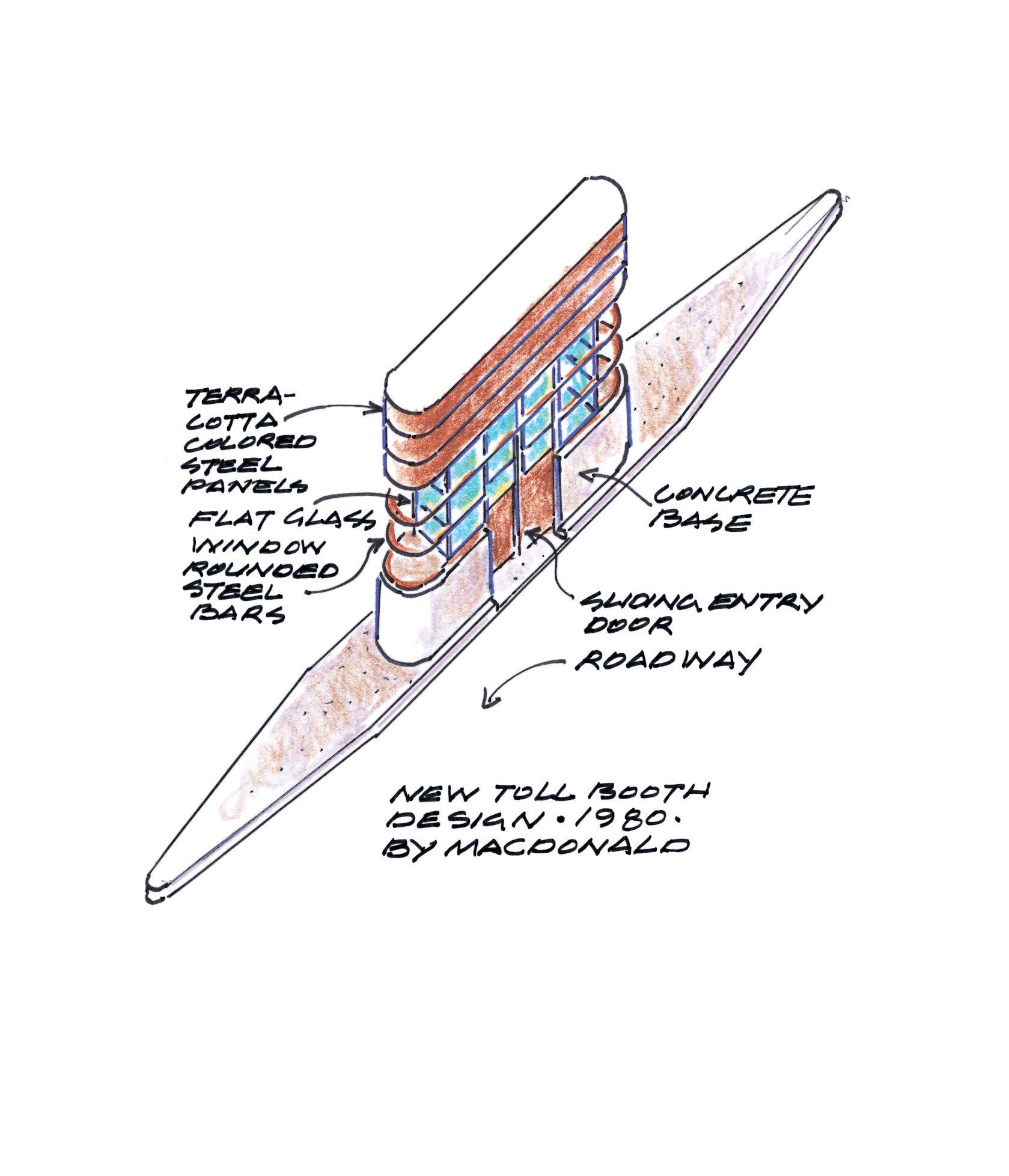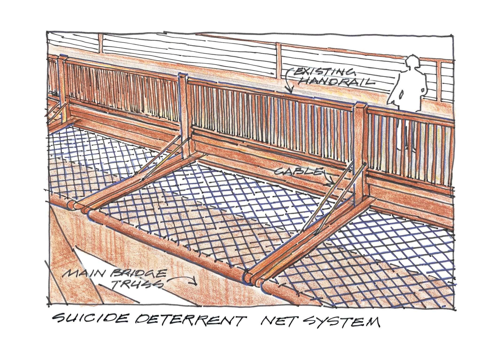We dug through the archives of our sister company Chronicle Books and pulled a few illustrations from the 2008 book Golden Gate Bridge: History and Design of an Icon by Donald MacDonald. MacDonald is the first architect to work on the Bridge since its completion by its original consulting architects. He redesigned the toll booths to their current form in 1980, installed the new bike rail, and set the guidelines for the bridge’s retrofit. He was also instrumental in the discussion of a possible suicide barrier for the bridge.