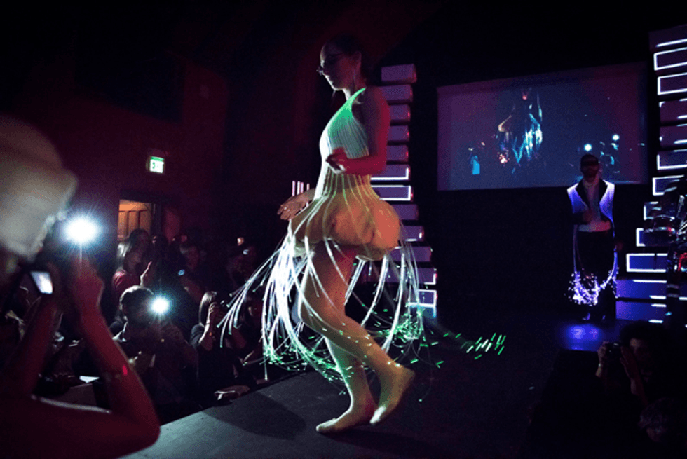 Form and function mingled onstage in a mishmash of technology-inspired garments this week at the first ever Silicon Valley Fashion Week.For three nights, The Chapel bar in the Mission (we're still unclear as to why SV Fashion Week was in San Francisco, too) was converted into a center for the Peninsula's version of haute couture, with local designers showcasing their imaginative work to an enthusiastic and increasingly inebriated young crowd of mostly techies.