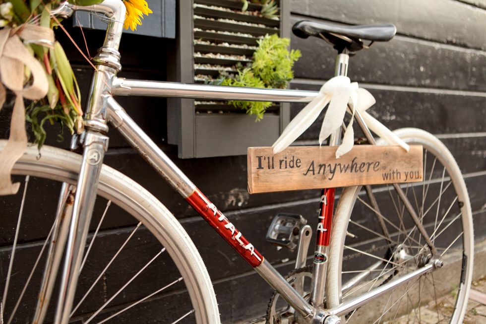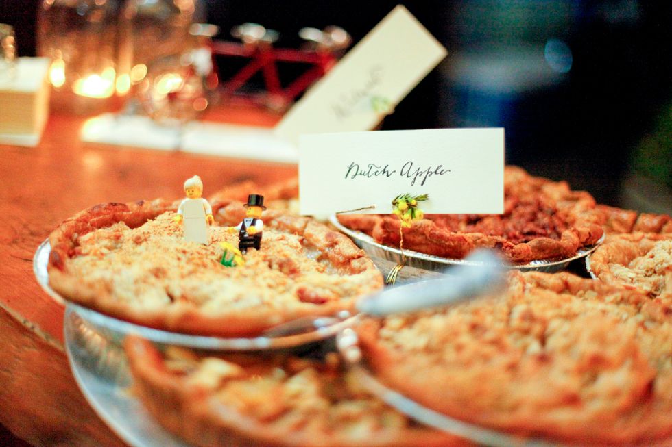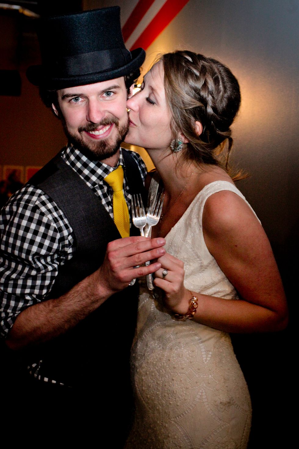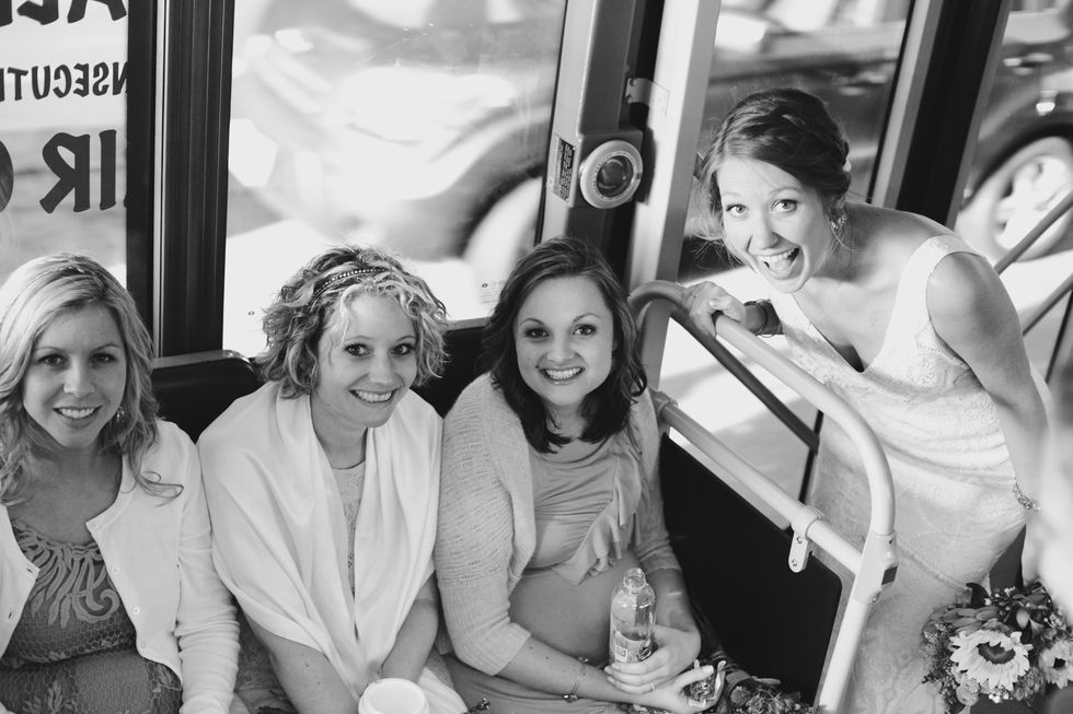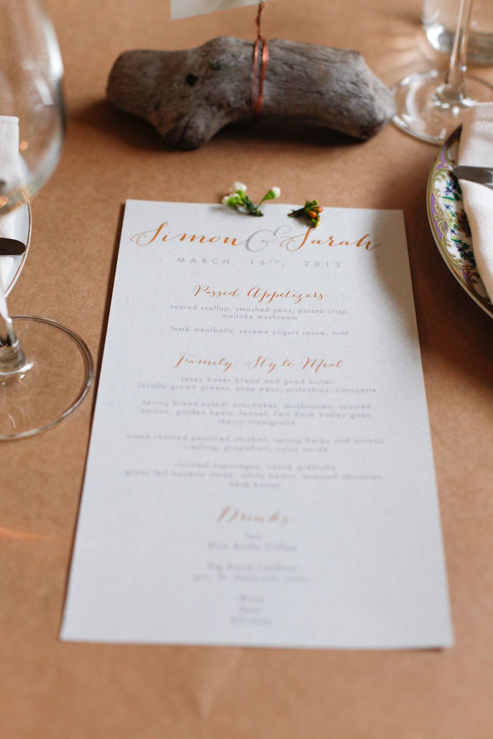The wedding was held at the Stable Cafe in the Mission, and followed with a cocktail hour on an open top bus that toured them and their East Coast guests through the city. With champagne in a can and local beer, they toured locations like the Palace of Fine Arts, the Cliff House, Dolores Park, and more. Returning to Stable Cafe for the reception, their food was all local and organic, with local wines and rented china plates and mason jars for dinnerware. Instead of flowers, they rented terraniums and succlents to decorate the tables and venue. Guests were even given an assortment of Craftsman & Wolves pastries, a favorite of the newlyweds. With pies from Mission Pie for dessert, they finished off their special day by heading around the corner to Mission Bowling Club for their bowling afterparty.